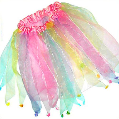 BR This pastel rainbow ribbon tutu is the perfect accessory for your little fairy pixie or princess The tutu measures 13 inches down and has a pink satin like waist The ends of the tutu are adorned with adorable shimmer butterfliesBRBR The stretchy pastel tutu fits girls ages 3-8 years Read More..